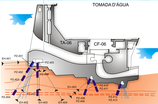 A SBB Engenharia atuou diretamente, para os seguintes empreendimentos, no cálculo e avaliação dos valores de controle para os vários parâmetros medidos, a saber, subpressões, deslocamentos, temperaturas, tensões e vazões de drenagem:
